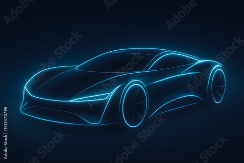 Futuristic hover concept car with glowing lines
