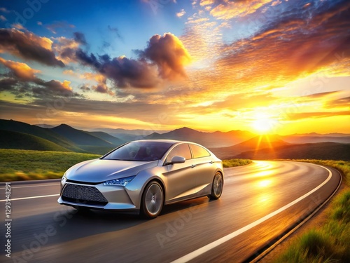 Futuristic Hydrogen Fuel Cell Car on a Scenic Road - Clean Energy Transportation