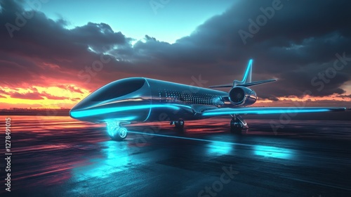 Futuristic Jet Sunset Runway Taxiing