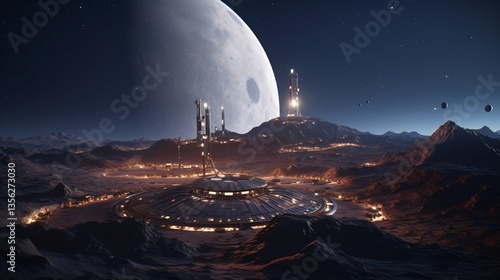 Futuristic Lunar Colony at Night A Sci-Fi Landscape