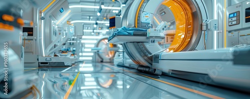 Futuristic medical imaging lab featuring advanced technology and sleek design, ideal for healthcare and innovation themes.