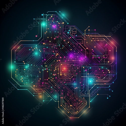 Futuristic Neon Circuit Board Background with Vibrant Glowing Lines