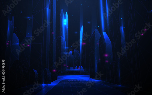 Futuristic Neon Cityscape with Glowing Geometric Structures