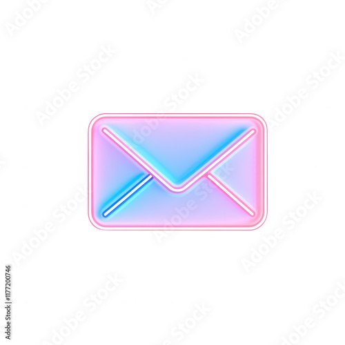 Futuristic neon envelope icon representing digital communication and messaging., isolated on a transparent background.