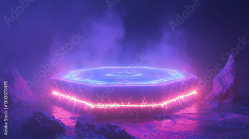 Futuristic neon podium in abstract background for modern design