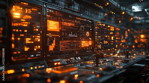 Futuristic Orange HUD Interface Control Panel Sci Fi Technology Digital Data Monitoring System