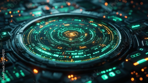 Futuristic Radar Interface with Glowing Elements and High Contrast Lighting
