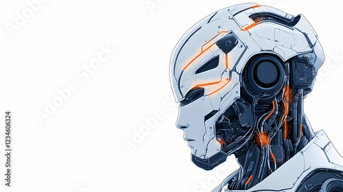 Futuristic robot head profile, white background, technological advancement, AI concept