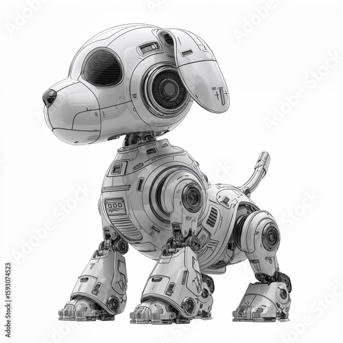 Futuristic robotic dog in metallic white on white background
