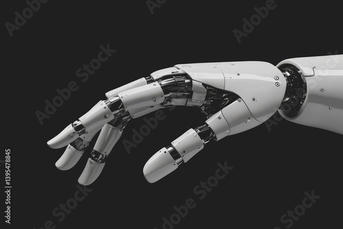 Futuristic robotic hand and arm on a black background illustrating technological advancements.