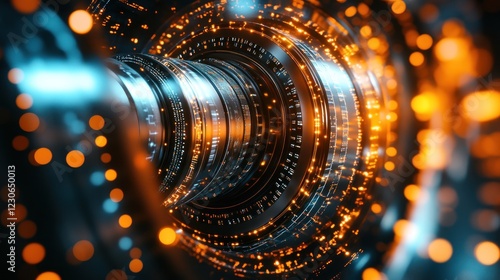 Futuristic Rotating Metallic Cylinder with Glowing Lights