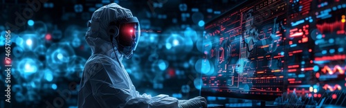 Futuristic Scientist Analyzing Data in High-Tech Lab.