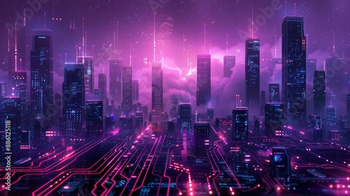 Futuristic Smart Cyber City illustration: Innovative Urban Landscape in Digital Circuitry, futuristic technology concept, Graphic Resources, Wallpapers, Brochure, Websites, banner design, Advertising,