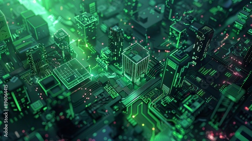 Futuristic Smart Cyber City illustration: Innovative Urban Landscape in Digital Circuitry, futuristic technology concept, Graphic Resources, Wallpapers, Brochure, Websites, banner design, Advertising,