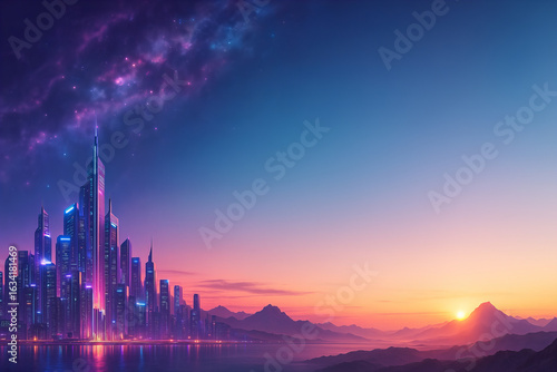 Futuristic Sunrise Cityscape with Neon Skyline