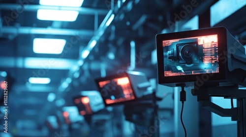 Futuristic Surveillance System: High-Tech Security Cameras in a Modern Industrial Setting