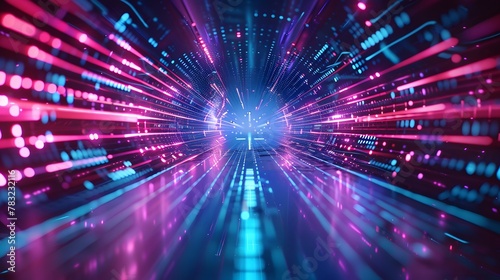 Futuristic technology abstract background with lines for network, big data, data center, server, internet, speed. Abstract neon lights into digital technology tunnel. 3D render