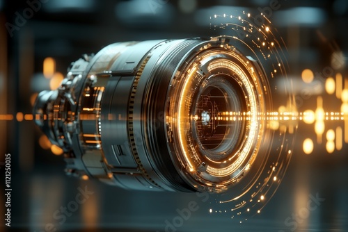 Futuristic technology concept featuring a glowing core in a high-tech environment during twilight hours