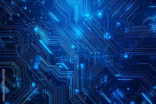 Futuristic vector illustration of a blue circuit board with intricate digital tech elements, perfect for advanced technology backgrounds.