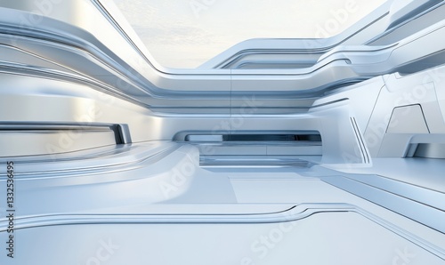 Futuristic white abstract architecture interior background