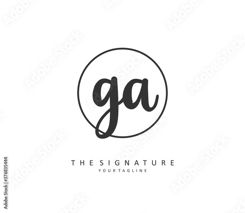 G A GA Initial letter handwriting and signature logo. A concept handwriting initial logo with template element.