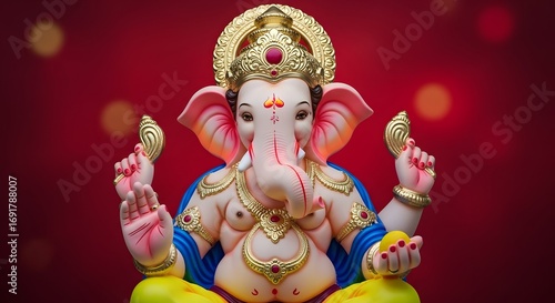 ganesh chaturthi Cultural Celebration, Lord Ganesha Statue, Hindu Temple, Photography, Festive Environment, Close-Up View, Spiritual Significance