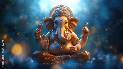 Ganesha surrounded by heavenly architecture formed by geometric symmetry, monograph art