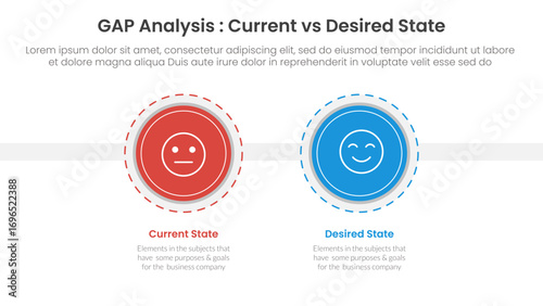 Gap analysis comparison concept for infographic template banner with big circle and outline style dotted with two point list information