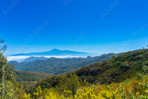 Garajonay forest in La Gomera, with the island of Tenerife in the background