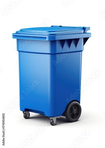 Garbage plastic blue white background.