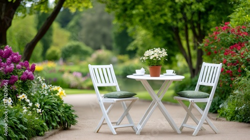 Garden table and chairs relaxing outdoor tea time