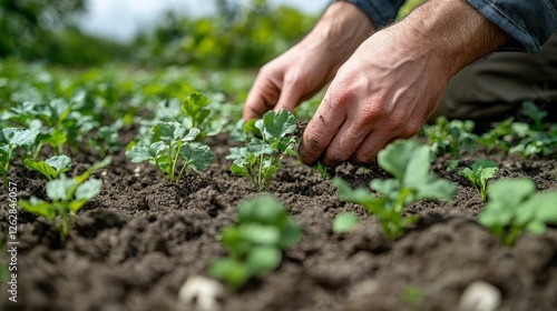 Gardener planting seedlings in spring garden