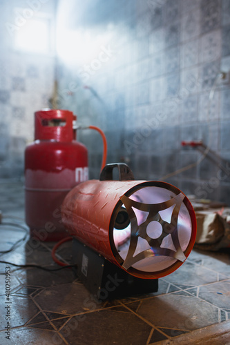 Gas gun heater with electric blower - open flame for efficient heating of the house - construction equipment