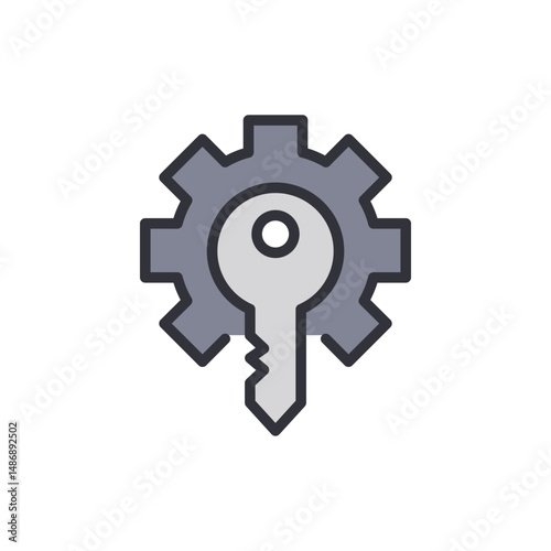 Gear And Key Icon Symbolizing Access Control With Transparent Space