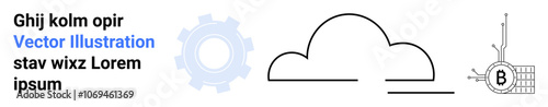 Gear, cloud, circuit board represent technology elements. Ideal for tech websites, software apps, cloud services, engineering projects, IT solutions, innovative platforms, and digital
