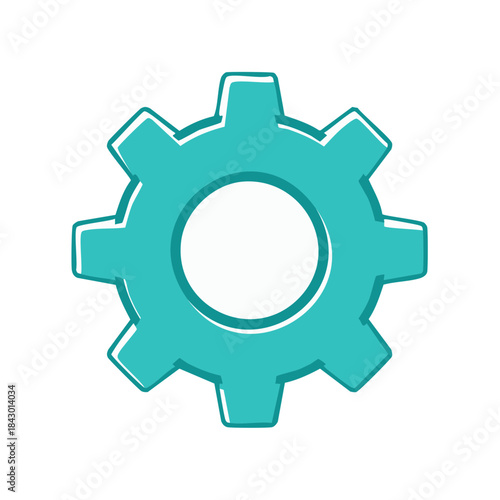 Gear Icon Illustration in Teal with Hand Drawn Look for Settings and Technology