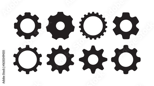 Gear icon set. black cogwheel vector collection, mechanical gear shapes, minimal maintenance, settings, repair symbols, Gear design collection. Victor illustration eps10
