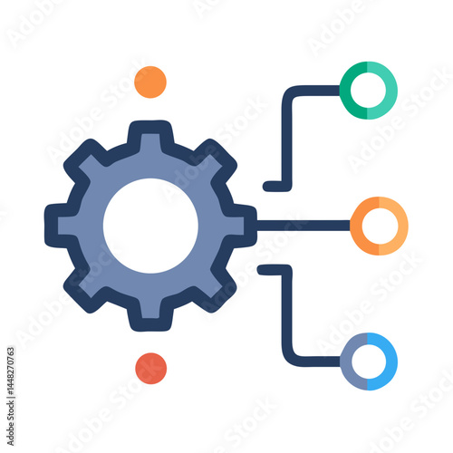 Gear Node Connection Representing AI Workflow Management and Process Automation