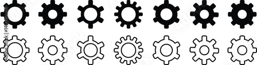 Gear setting icon set, containing Cog wheel, Gear wheel symbol, Vector illustration.