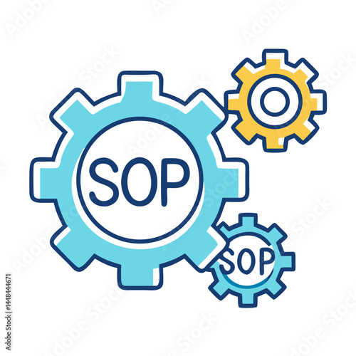 Gear with SOP Label Icon Representing Process Standardization and Operational Procedures