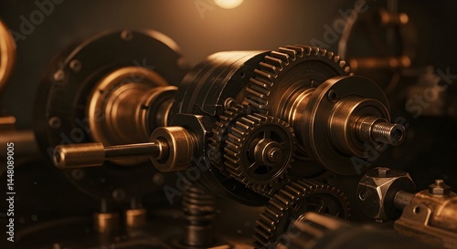 Gears and Cogs Rotating in a Complex Machine Close Up