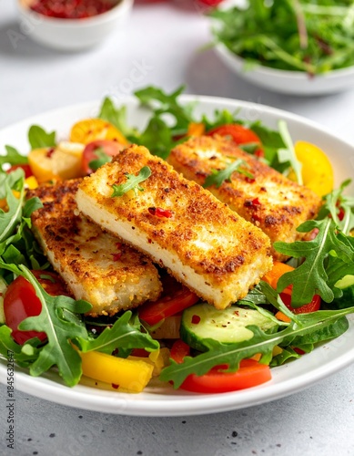 Gebratener Halloumi mit buntem Salat