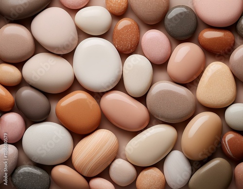 Generated image A soothing aesthetic background featuring an array of smooth pebbles in elegant beige