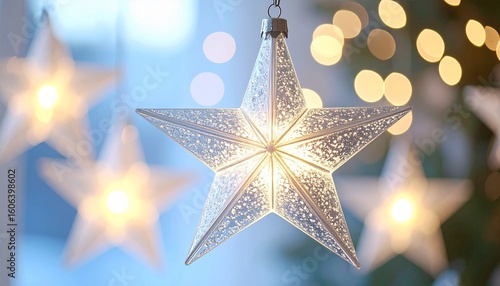 柔らかな光を放つ星形ランプ:ホリデーシーズンのデコレーションGenerated image