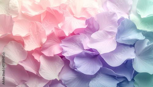 ピンク、パープル、グリーンのグラデーションが美しい花びらの背景Generated image