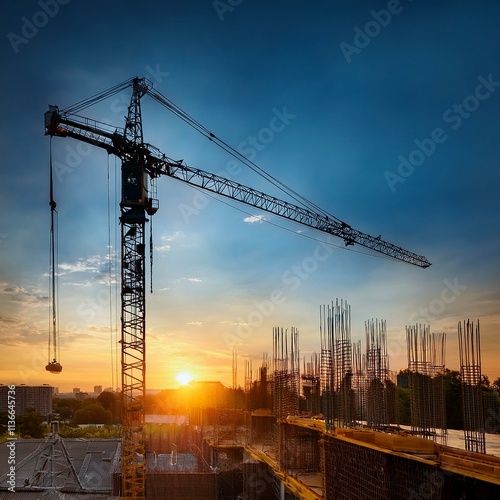 Generated image Silhouette of construction site crane on a sunset sky, symbolizing industry and urban development