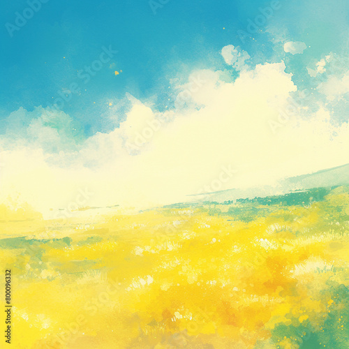 幻想的な絵本の様な可愛い空と雲と花畑の風景イラスト Generative AI