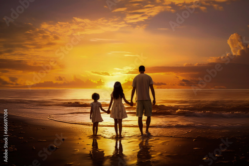 Generative AI illustration of happy family playing on the beach