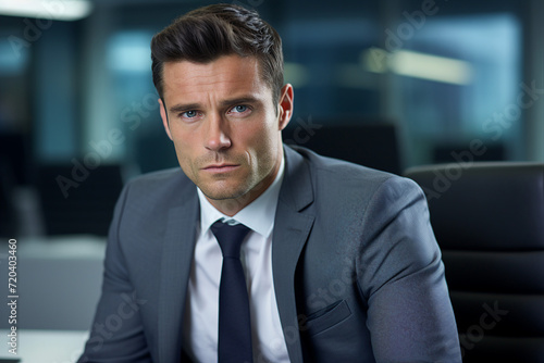 Generative AI picture of handsome successful man working in office on business meeting conference