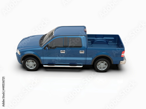 Generic and Brandless Pickup Truck with Enclosed Cabin Isolated on White 3d Illustration